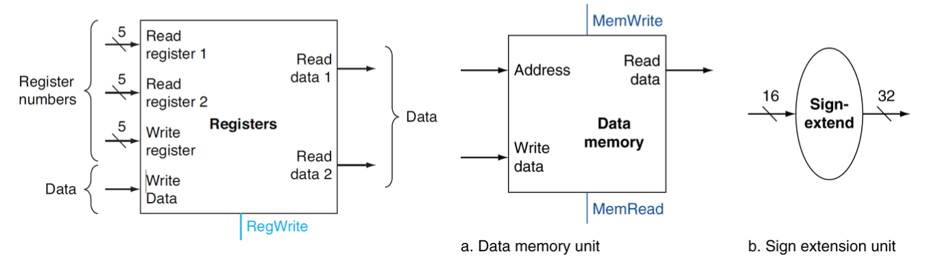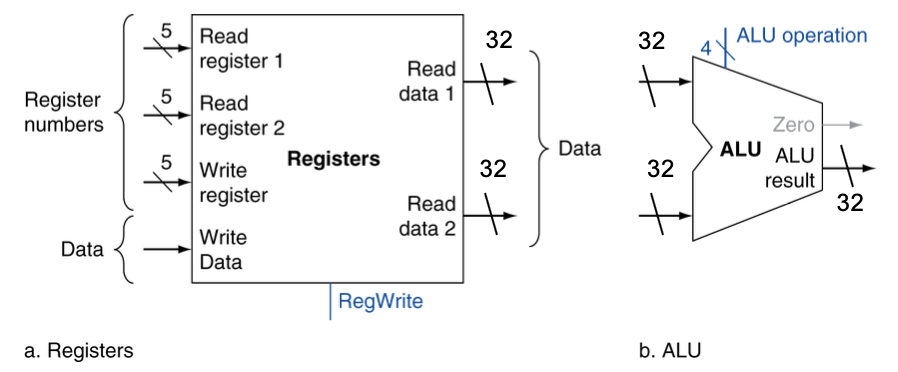 - R-format instructions을 구현하려면 두가지 element가 필요함.