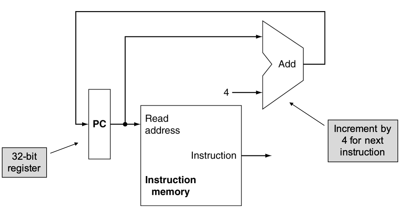 - PC에서 갖고 있는 명령어 주소에 4바이트만큼 더해줘, 다음 명령어를 PC에 저장함. 이와 같은 원리로 PC가 다음에 실행될 명령어를 갖고 있는 것임.