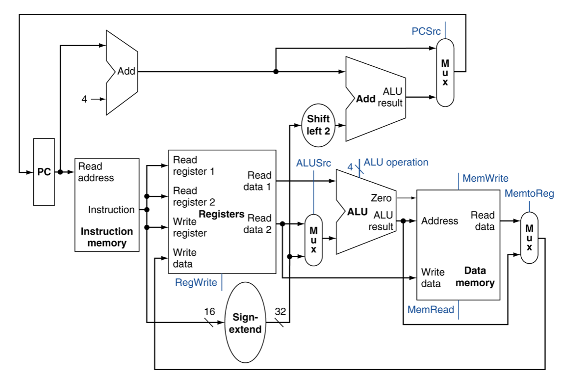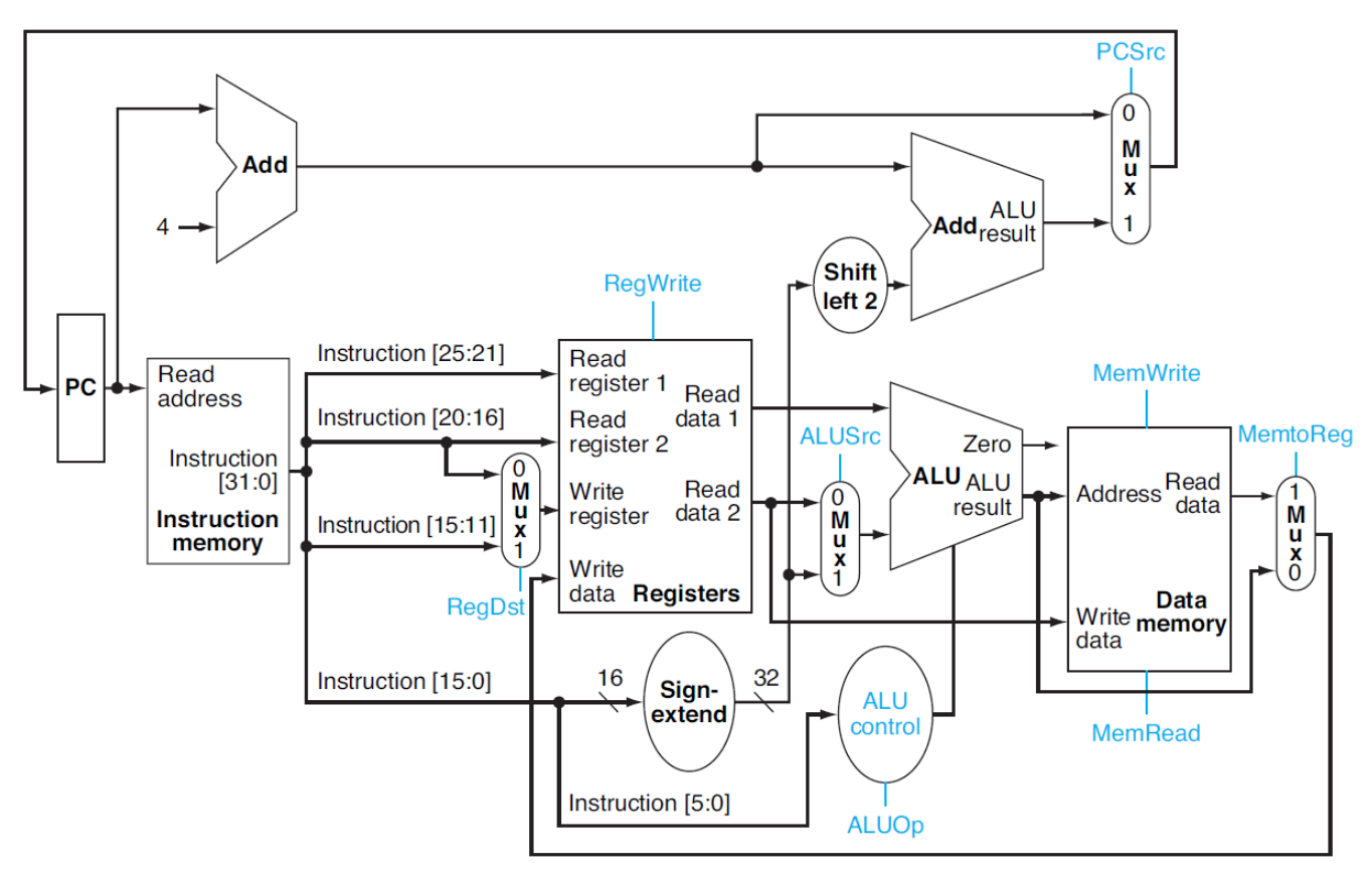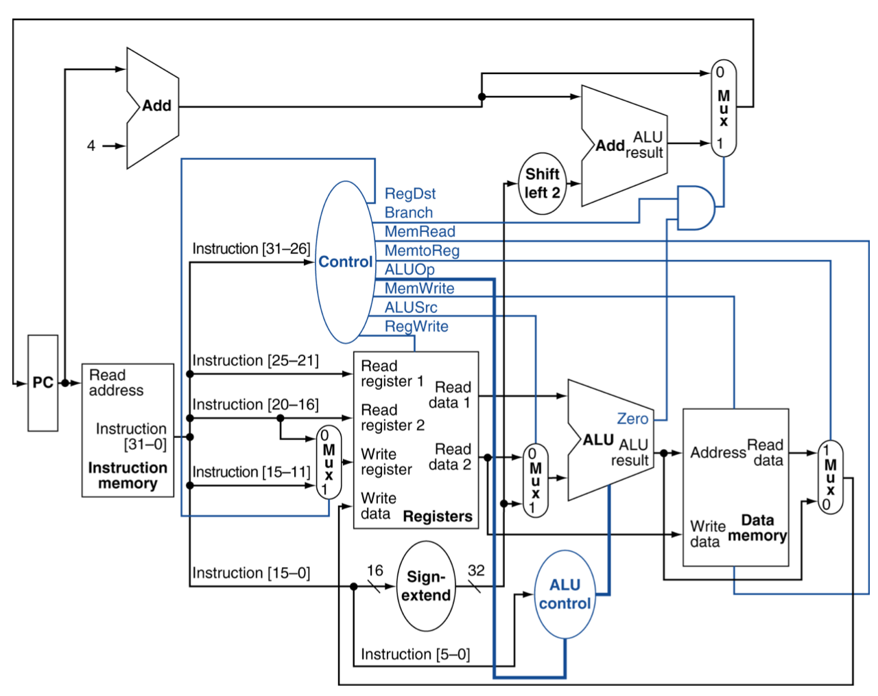- Control: 각각의 명령어를 수행하기 위한 연산을 하기 위해서 datapath와 이들 사이의 data flow를 제어하는 것.