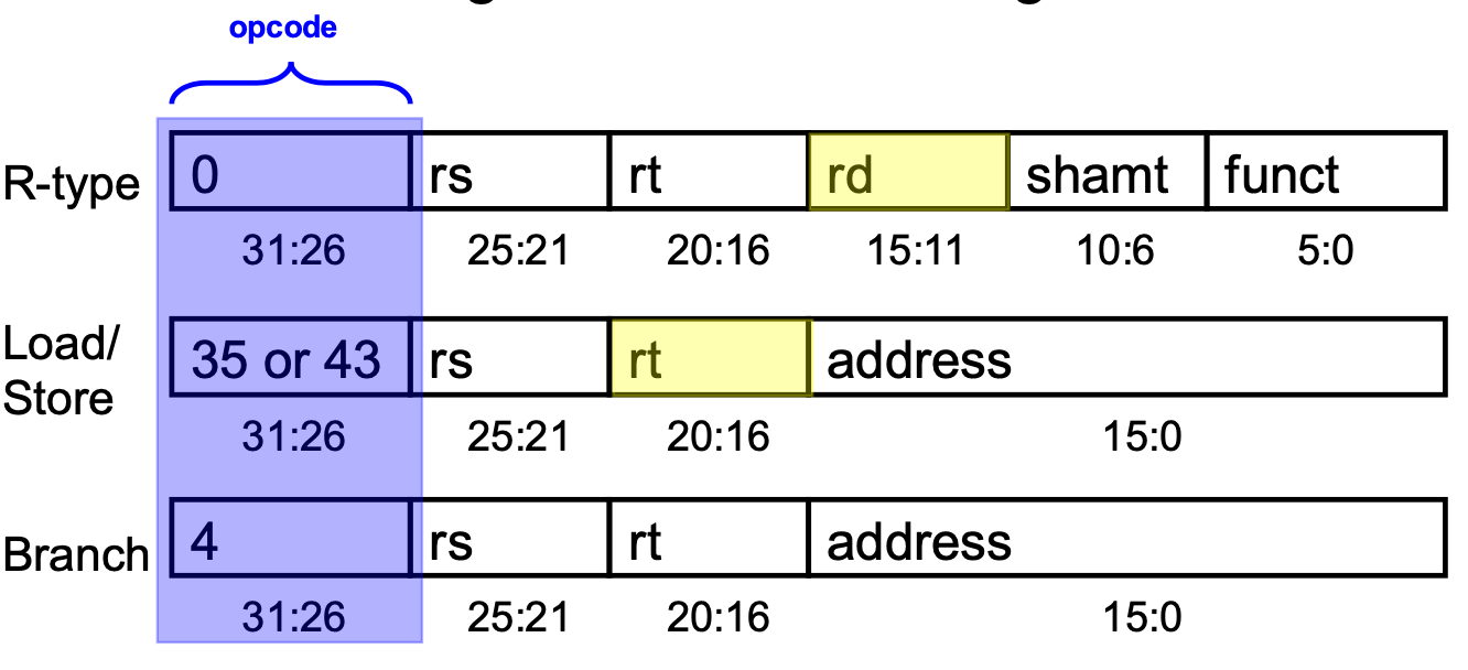 4. Destination register: lw는 rt, r-type 명령어는 rd로 가짐.