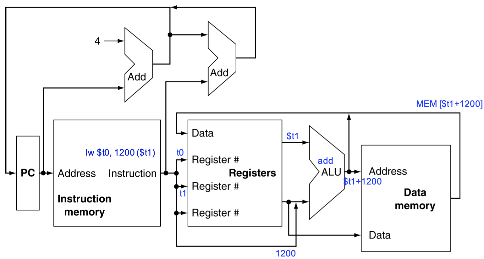 1. lw 명령어와 어떤 녀석들로 연산을 할 지, 명령어 메모리 (Instruction memory)에 가져옴.